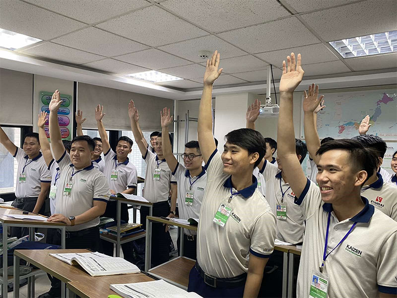 エスハイのKaizen吉田スクールには実習生クラスとは別にエンジニアクラスがあり、ベトナム各地の技術系大学を卒業した学生が日本でエンジニアとして働くために日本語やマナー・マインドを1日8時間、帰宅してからも3-4時間猛勉強しています。